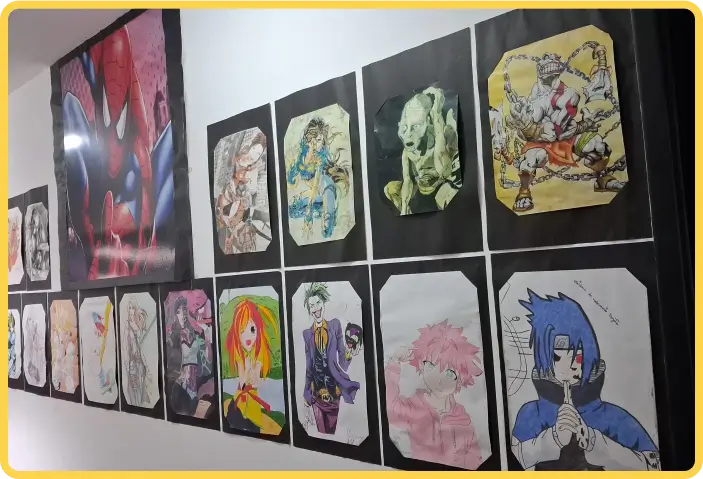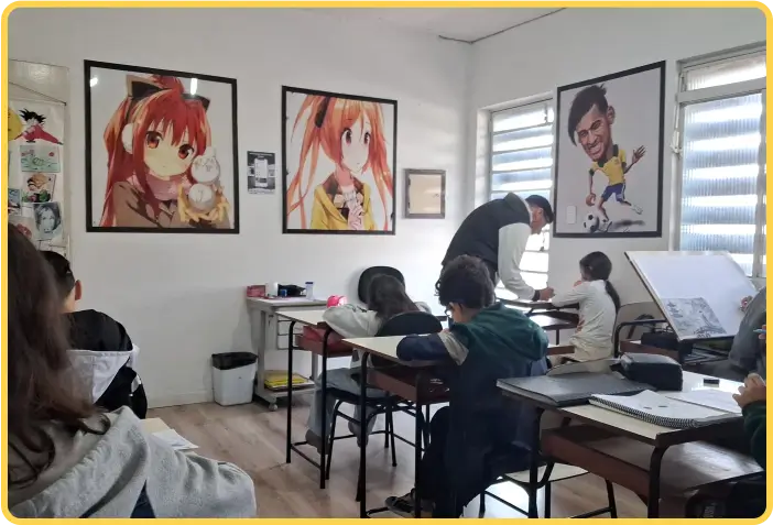 Oferecemos uma variedade de cursos, incluindo Desenho Artístico, Desenho Infantil, Desenho HQ, Desenho Mangá, Pintura em Tela e Pintura em Tecido